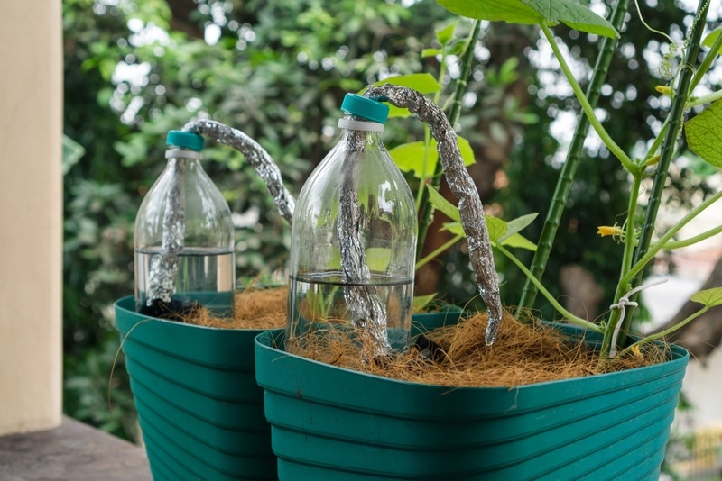 Voor een langzame, maar constante watertoevoer voor je planten in (kweek)bakken en potten kun je ook een lege pet-fles gebruiken. Haal de dop eraf (en doneer die eventueel aan een goed doel, waarvoor plastic doppen en deksels worden ingezameld) en knip de onderkant uit de pet-fles. Steek de fles op z'n kop in de grond en vul deze met water. Dat sijpelt dan beetje bij beetje de grond in.